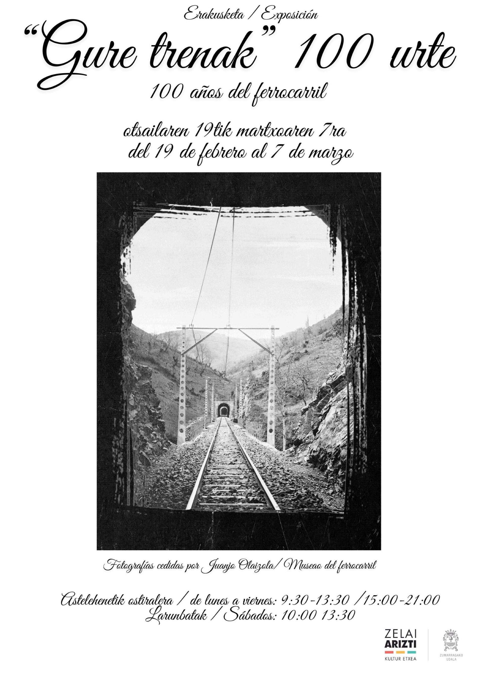 Varios Del 19 de febrero al 7 de marzo Apertura 19:00 Sala de exposiciones Zelai Arizti Del 19 de febrero al 7 de marzoFicha artísticaFicha artística100 AÑOS DEL FERROCARRIL Exposición fotográfica